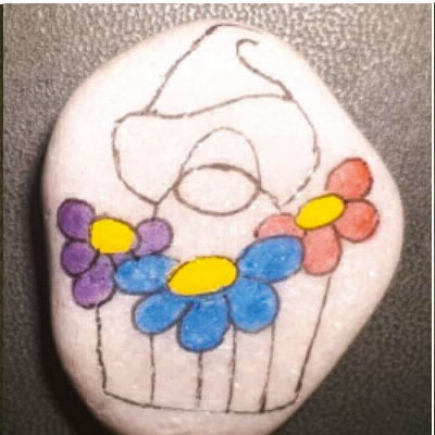 Für die mittlere Blume etwas unterhalb der Mitte des Steins beginnen.